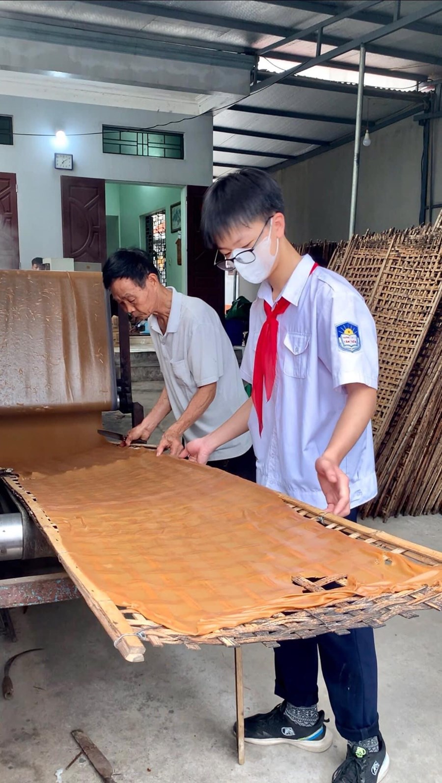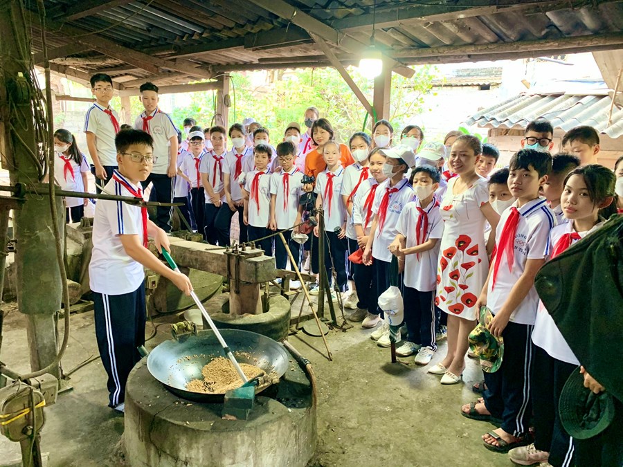 * Một số hình ảnh học sinh đi trải nghiệm tại làng nghề làm bánh đa, làm cốm tại Thôn Nông Xá - Xã Tân Tiến.