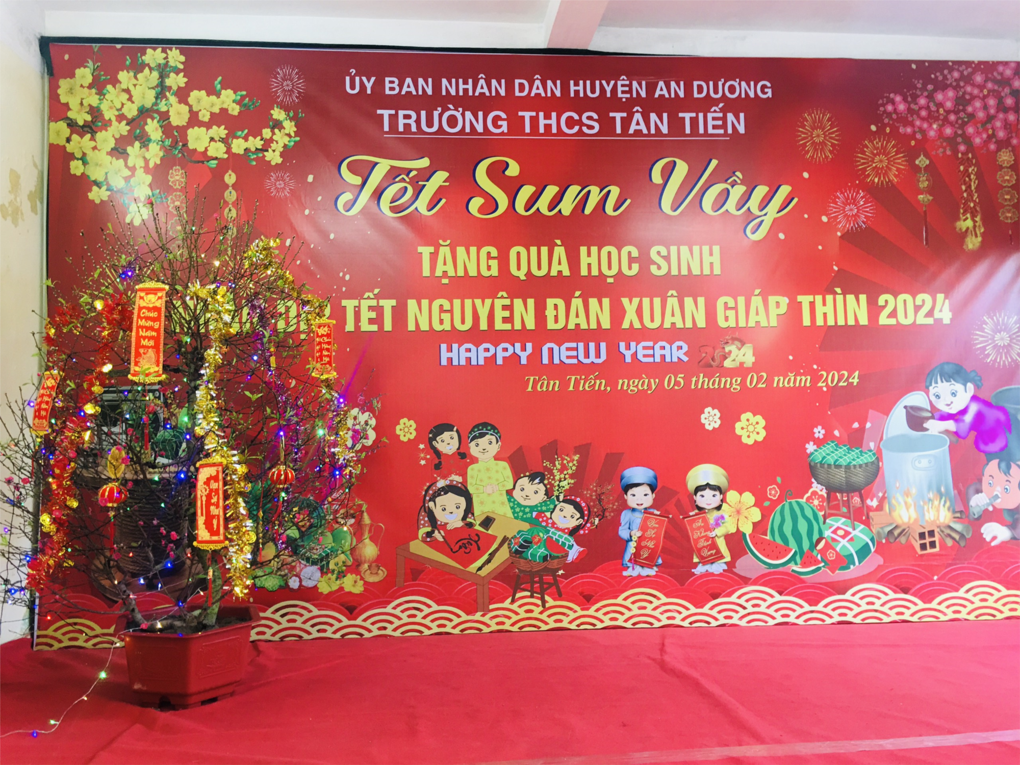 Nhân dịp Tết Nguyên đán Giáp Thìn 2024, sáng 05/02/2024, trường THCS Tân Tiến tổ chức chương trình “Tết sum vầy” tặng quà những học sinh có hoàn cảnh khó khăn vươn lên trong học tập nhân dịp Tết.