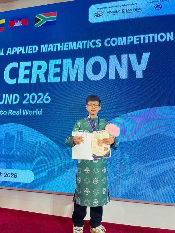 Kì thi Toán ứng dụng Quốc tế (VIAMC) do Viện Nghiên cứu Ứng dụng STEM và Đào tạo Nhân lực (IASTEM) tổ chức, với sự bảo trợ chuyên môn của Khoa Toán - Tin học, Trường Đại học Sư phạm Hà Nội. Cuộc thi hướng tới mục tiêu giúp học sinh phát triển tư duy toán học hiện đại, đồng thời tăng cường khả năng vận dụng toán học trong các lĩnh vực khoa học, công nghệ, kinh tế và đời sống thực tiễn. Tự hào đại diện cho học sinh nhà trường tham gia sân chơi trí tuệ này, em Nguyễn Hoàng Long – học sinh lớp 7C1, Trường THCS Tân Tiến, do cô giáo Lê Thị Ngọc Bích chủ nhiệm và trực tiếp dẫn dắt, đã tham gia thi đấu cùng hơn 3.000 học sinh đến từ 15 quốc gia và vùng lãnh thổ. Với bản lĩnh và năng lực nổi bật, em đã xuất sắc giành Huy chương Bạc cấp Quốc gia. Thành tích ấn tượng đó đã giúp em lọt vào Vòng Chung kết Quốc tế, được tổ chức vào ngày 06 tháng 3 năm 2026 tại thành phố Đà Nẵng.